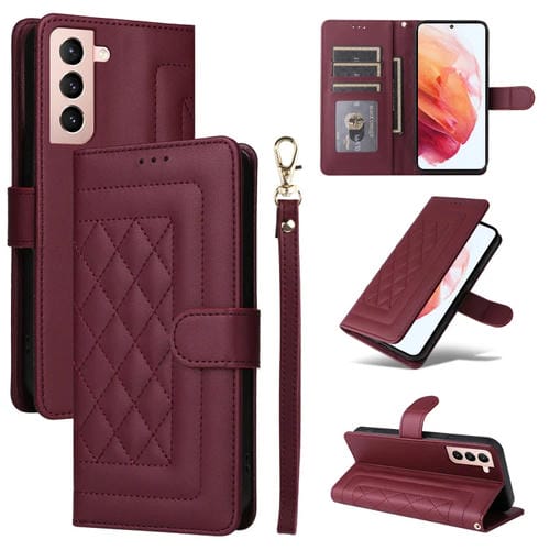 Estuche para Teléfono Samsung Galaxy S21 5G con Tapa de Cuero Diamond Lattice (Rojo Vino)