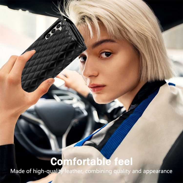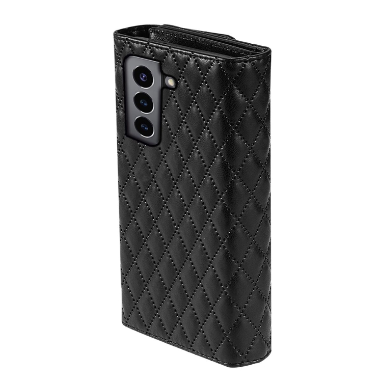 Estuche para Teléfono Samsung Galaxy S21 5G Cuero Rómbico con Billetera MultiTarjeta con Cremallera (Negro)