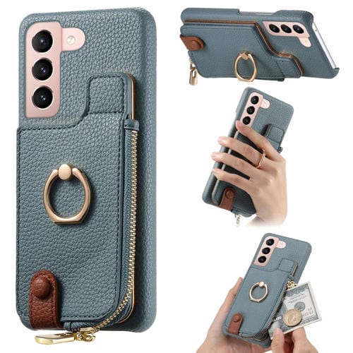 Funda para Samsung Galaxy S21 5G Litchi Leather Oil Edge Ring Zipper Wallet Back (Azul)