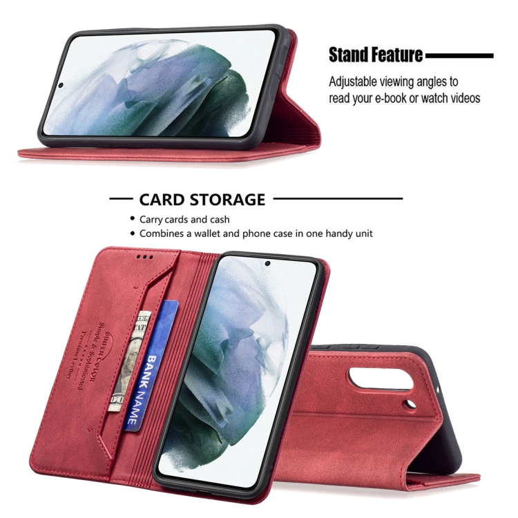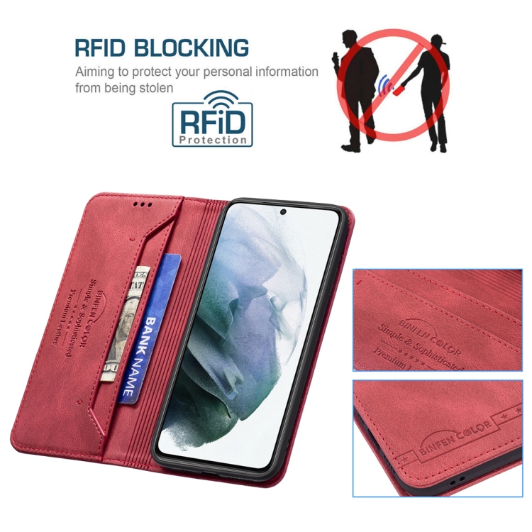 Estuche para Samsung Galaxy S21 FE 5G Cuero Antirrobo con Bloqueo RFID, Soporte y Ranuras para Tarjetas (Rojo)