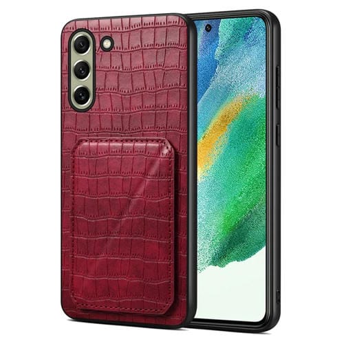 Funda Trasera Denior para Samsung Galaxy S21 FE 5G Piel de Cocodrilo con Soporte (Rojo Rosa)