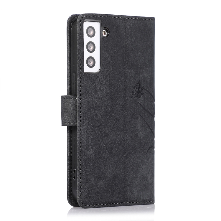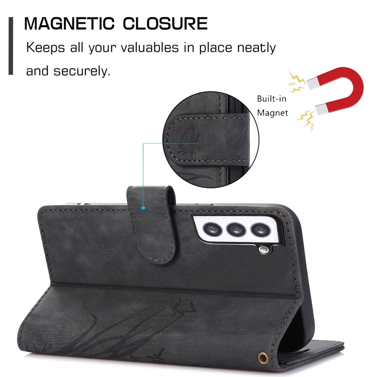 Funda para Teléfono Samsung Galaxy S21 FE 5G Cuero Relieve Mariposa Orquídea (Negro)