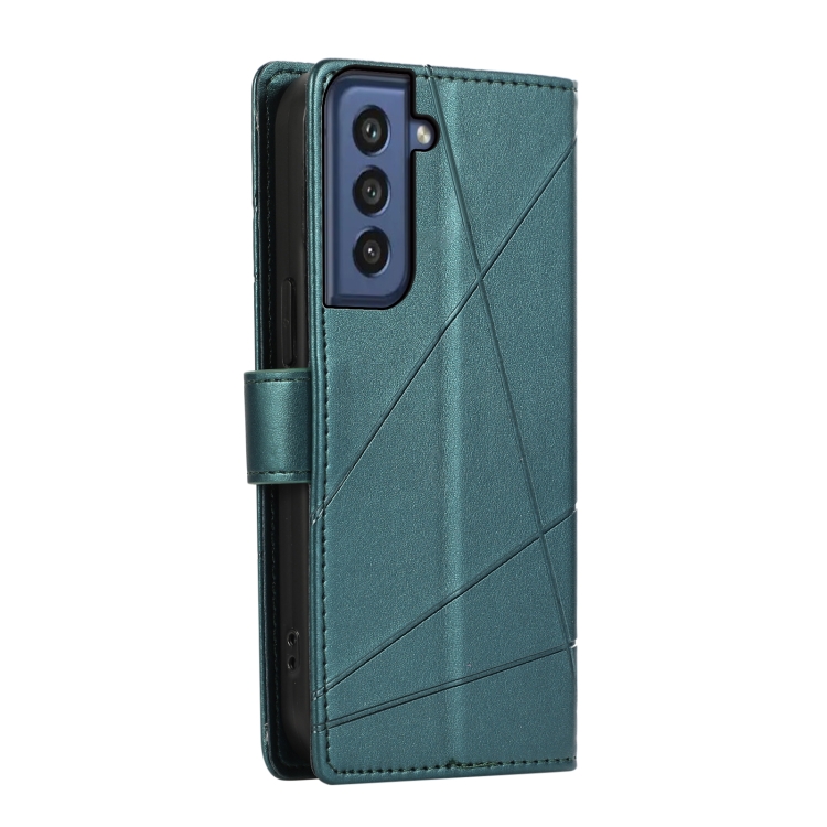 Funda para Teléfono Samsung Galaxy S21 FE 5G PU con Línea en Relieve y Textura de Cuero Genuino (Verde)