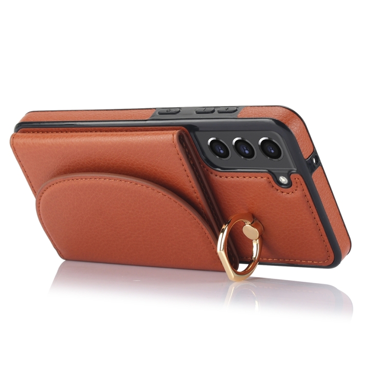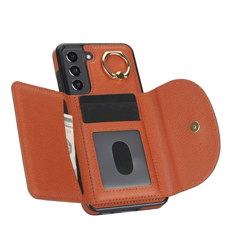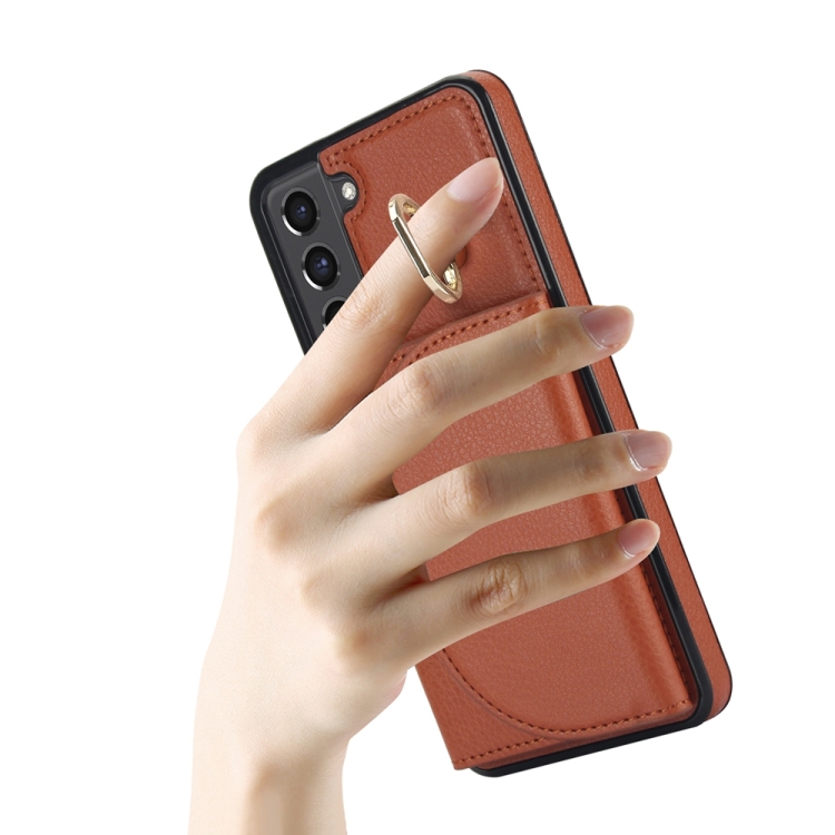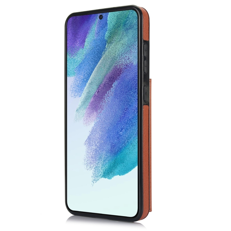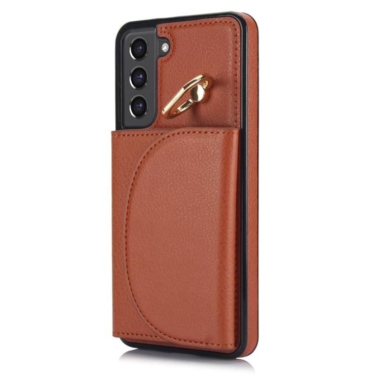 Funda para Teléfono Samsung Galaxy S21 FE 5G Ym007 con Soporte para Anillo y Tarjeta (Marrón)