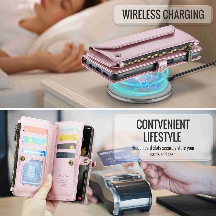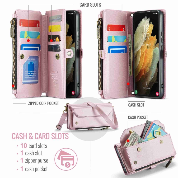Funda Cartera para Samsung Galaxy S21 Ultra 5G Caseme C36 con Ranuras para Tarjetas y Cremallera RFID (Rosa)