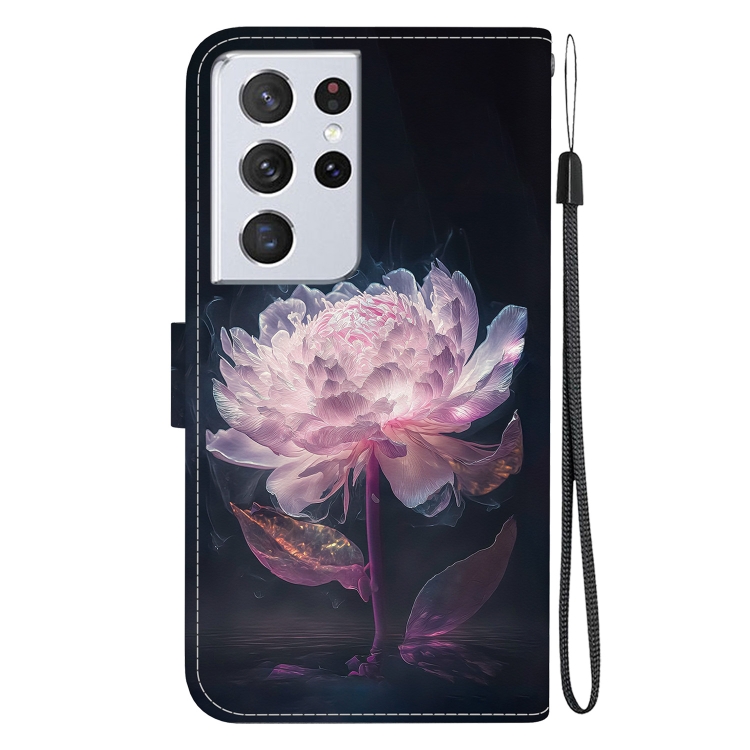 Funda para teléfono Samsung Galaxy S21 Ultra 5G Cuero dibujo coloreado textura cristal (Peonía Púrpura)
