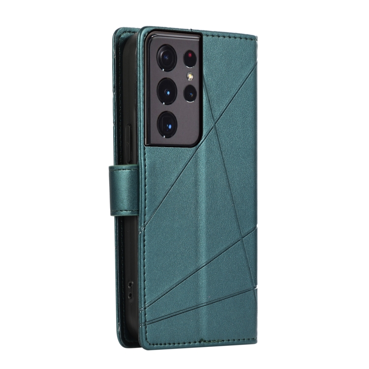 Funda para teléfono Samsung Galaxy S21 Ultra 5G PU Cuero Genuino Textura Línea en Relieve (Verde)