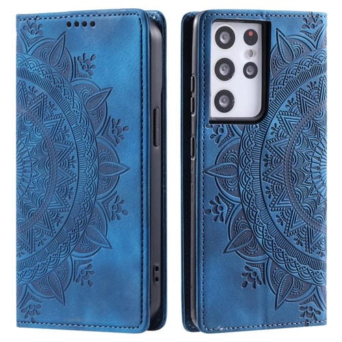 Funda para Samsung Galaxy S21 Ultra 5G Totem Cuero Magnética En Relieve (Azul)