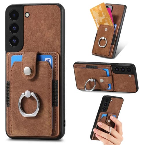 Funda para Teléfono Samsung Galaxy S22+ 5G con Billetera, Tarjeta, Anillo y Sensación de Piel Retro (Marrón)