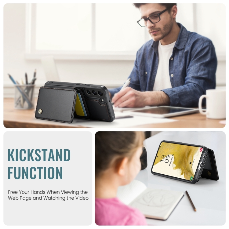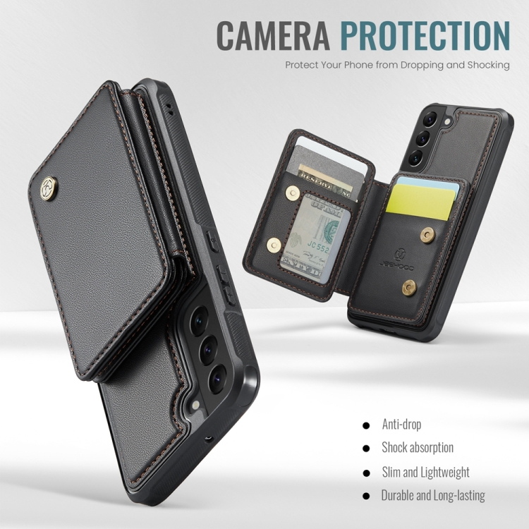 Estuche para teléfono Samsung Galaxy S22 + 5G Jeehood J05 cuero Rfid magnético empresarial (Negro)