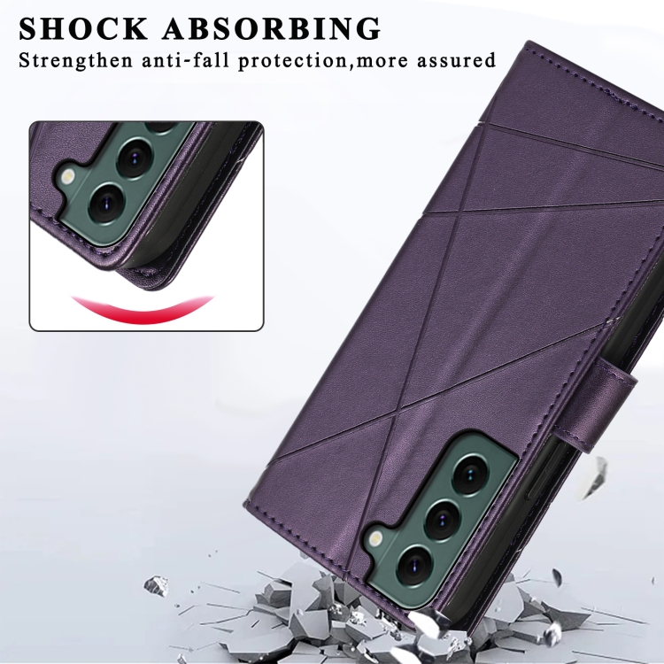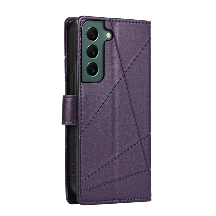 Funda para Teléfono Samsung Galaxy S22+ 5G con Línea en Relieve y Textura de Cuero Genuino (Púrpura)