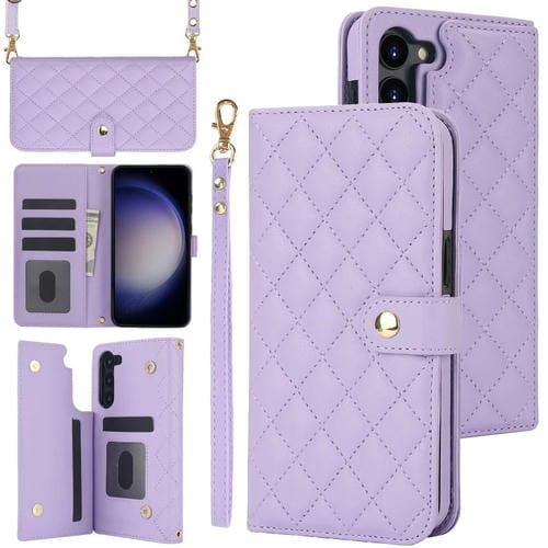 Estuche para Teléfono Samsung Galaxy S23 5G Crossbody de Cuero Rómbico Multifunción (Púrpura)
