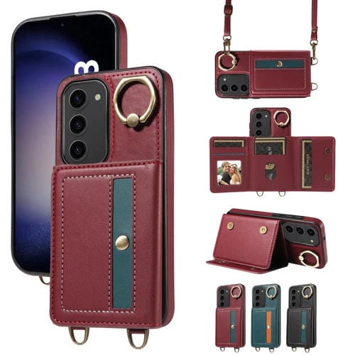 Funda para Samsung Galaxy S23 5G Crossbodys Wallet Bag Ring Holder de Cuero (Rojo)