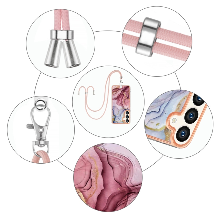 Estuche para Teléfono Samsung Galaxy S24 5G Imd Doble Cara Mármol Galvanizado con Cordón (Rose Red)
