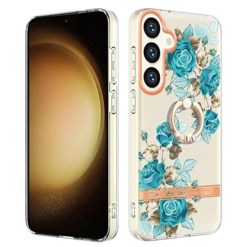 Estuche para Teléfono Samsung Galaxy S24 5G Serie Flores y Plantas Imd TPU con Soporte para Anillo (Rosa Azul)