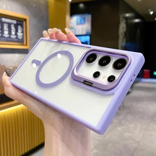 Estuche para Teléfono Samsung Galaxy S24 Ultra 5G Magsafe Soporte Marco de Lente Metal (Púrpura)