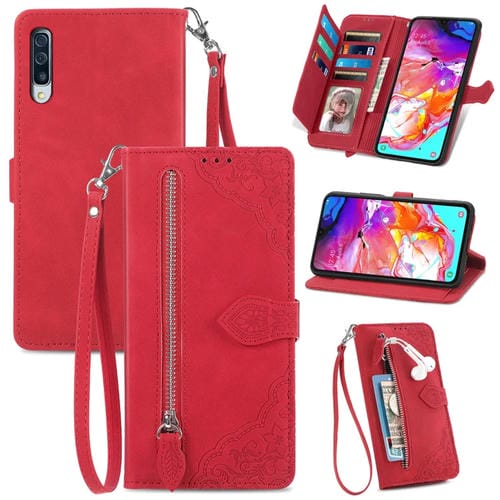 Funda de Cuero Samsung Galaxy S24 Ultra 5G con Cremallera y Flores en Relieve (Rojo)