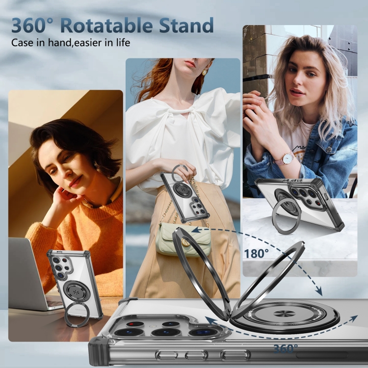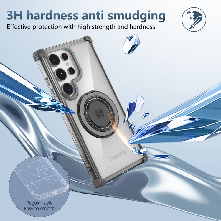 Estuche para Samsung Galaxy S24 Ultra 5G Gold Shield Cd Pattern Magsafe Magnético con Soporte Giratorio (Negro Transparente)