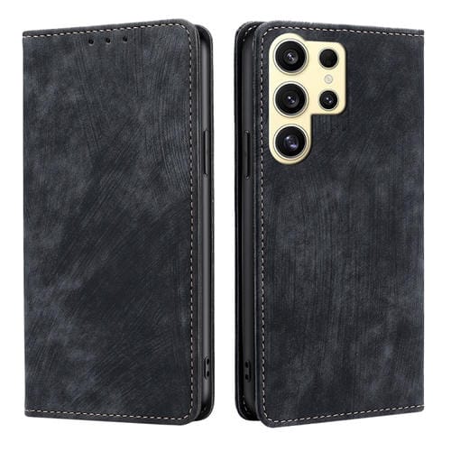 Estuche para Teléfono Samsung Galaxy S24 Ultra 5G Rfid Cuero Magnético con Cepillo Antirrobo (Negro)