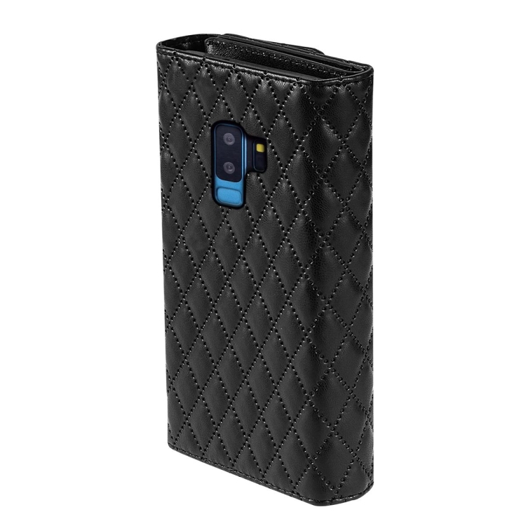 Estuche para Teléfono Samsung Galaxy S9 Cuero Rómbico con Billetera MultiTarjeta y Cremallera (Negro)