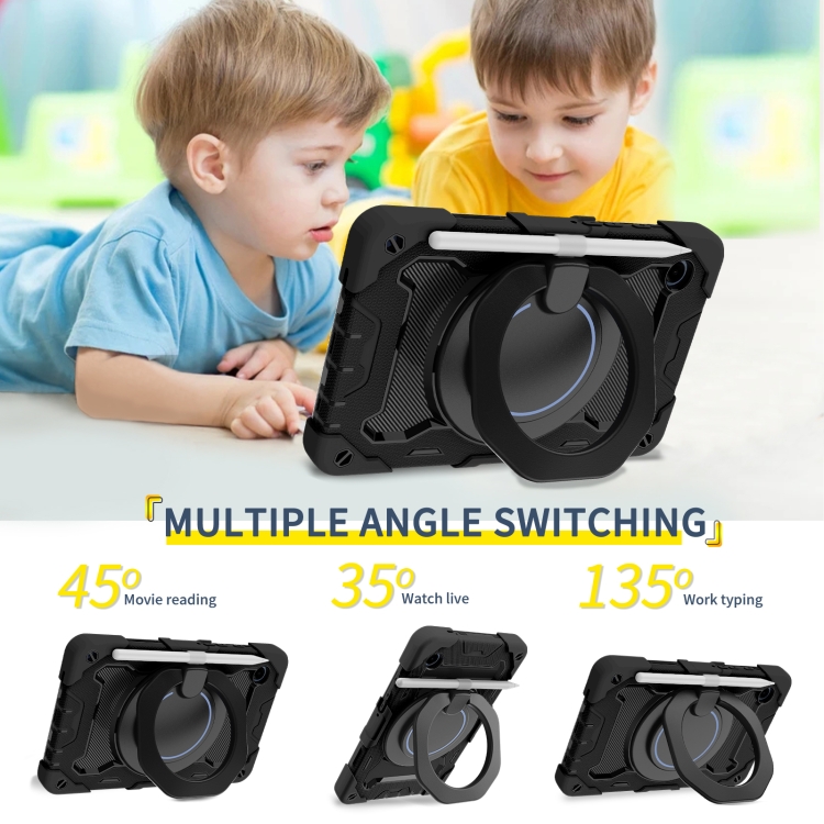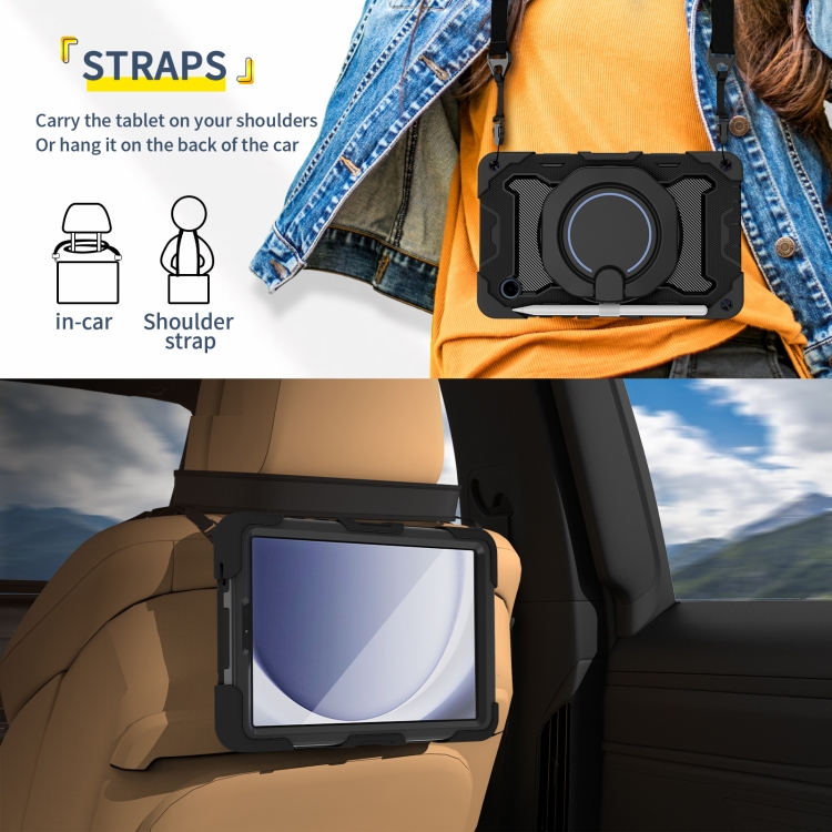 Funda para Tablet Samsung Galaxy Tab A9 Armor Silicona Soporte Anillo Giratorio (Negro)