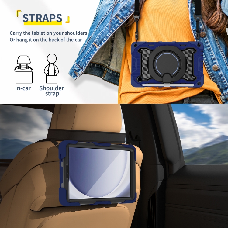 Funda para Tablet Samsung Galaxy Tab A9 Armor Silicona con Soporte de Anillo Giratorio (Azul Marino)