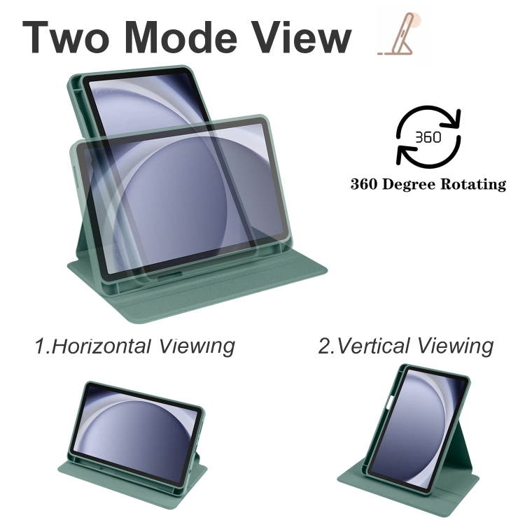 Funda de Cuero para Samsung Galaxy Tab A9 Tablet Inteligente Rotación 360 Grados (Verde Oscuro)