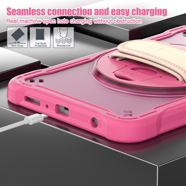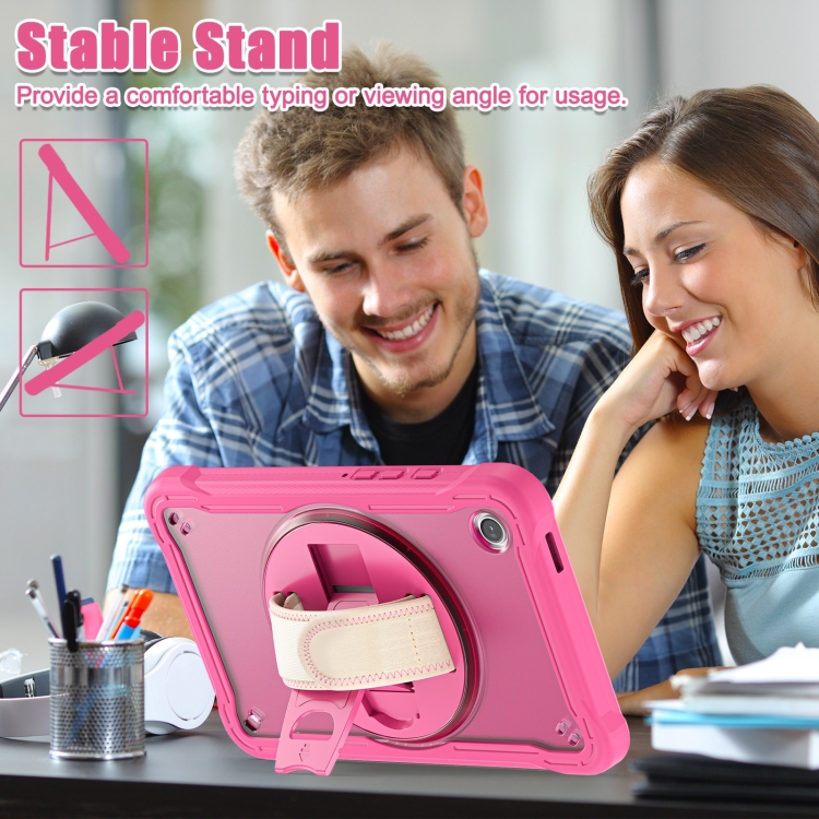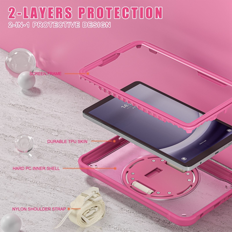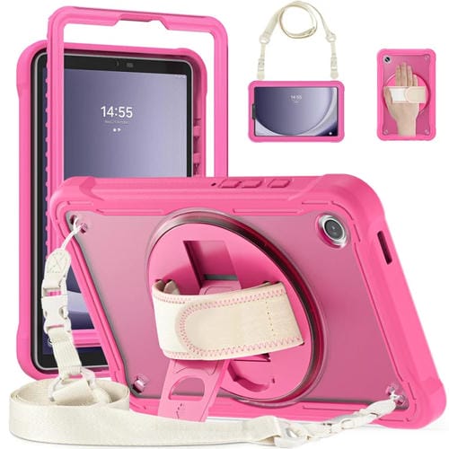 Estuche híbrido para Samsung Galaxy Tab A9 X110 / X115 resistente con asa y correa (Rojo Rosa)