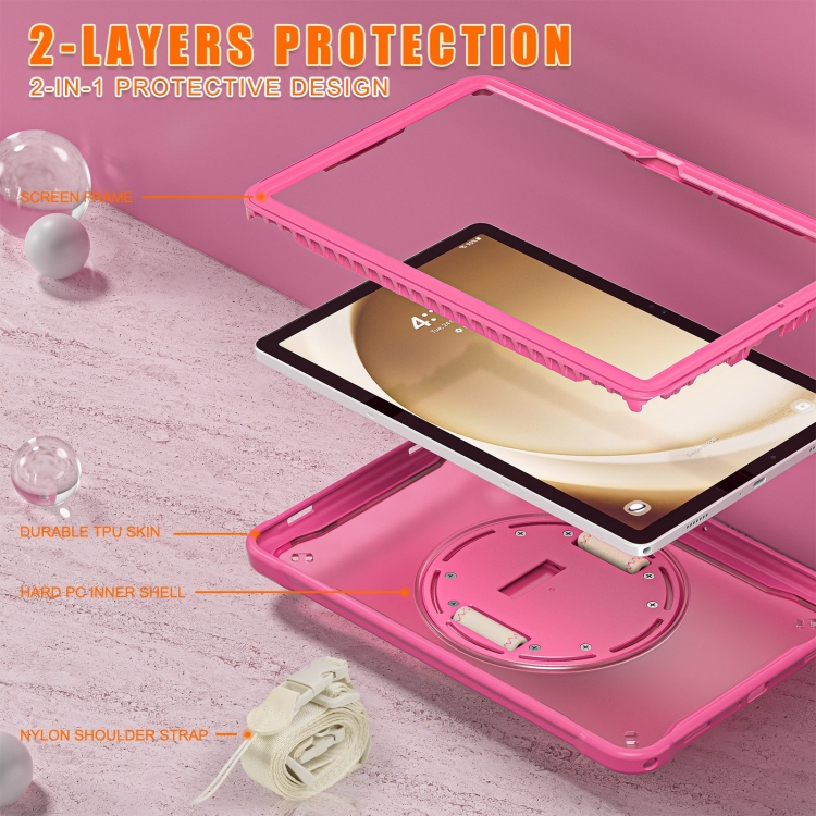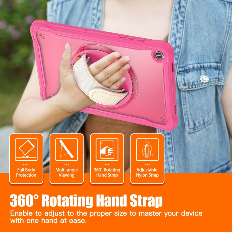 Estuche híbrido para Samsung Galaxy Tab A9 + X210 / X215 resistente con asa y correa (Rojo Rosa)