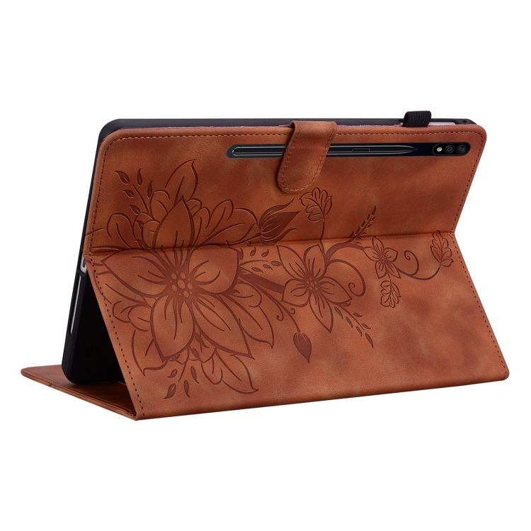 Funda para Tablet Samsung Galaxy Tab S7 FE / S8 + / S7 + Cuero Relieve Lily (Marrón)