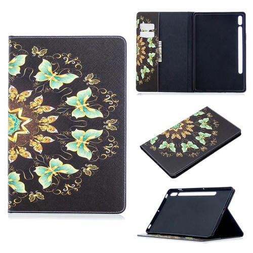 Funda para Tablet Samsung Galaxy Tab S8 y Tab S7 T870 Patrón de Dibujo Horizontal Flip con Soporte y Ranuras para Tarjetas (Mariposa Semicircular)
