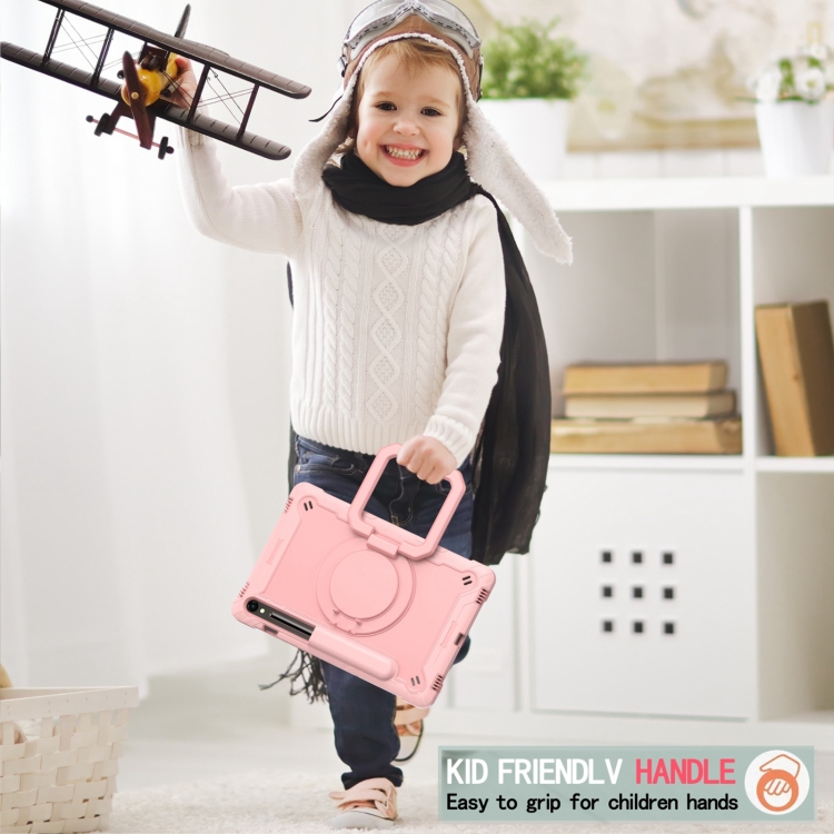 Funda Tablet Samsung Galaxy Tab S9 FE S9 Handle Robot Silicone Hybrid PC (Oro Rosa)