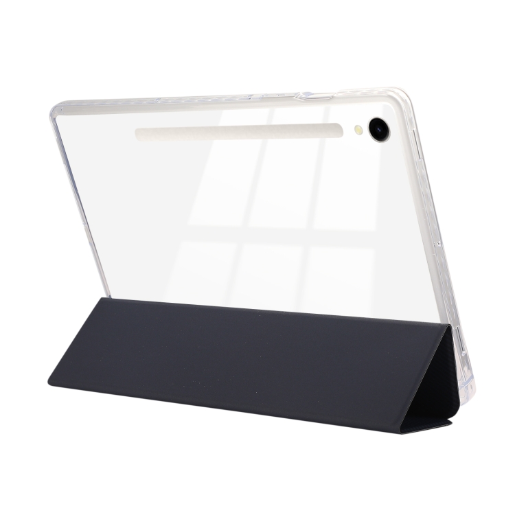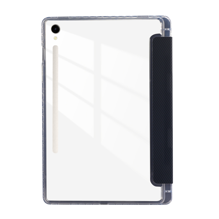 Funda para Tablet Samsung Galaxy Tab S9 / S9 FE de Cuero 3 Pliegues Acrílico Transparente Fibra de Carbono (Azul Oscuro)