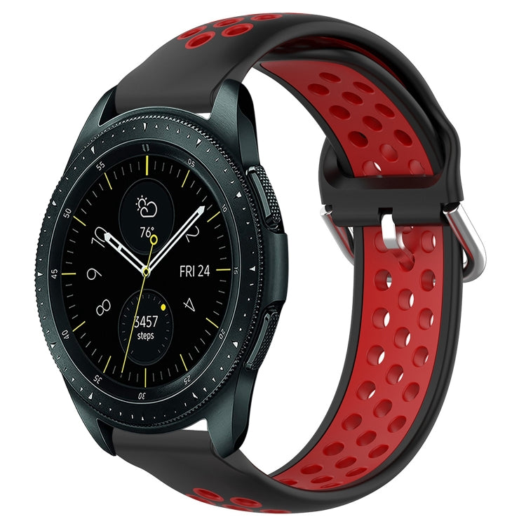 Banda de Reloj para Samsung Galaxy Watch 42mm 20mm silicona deportiva transpirable perforada (Negro + Rojo)