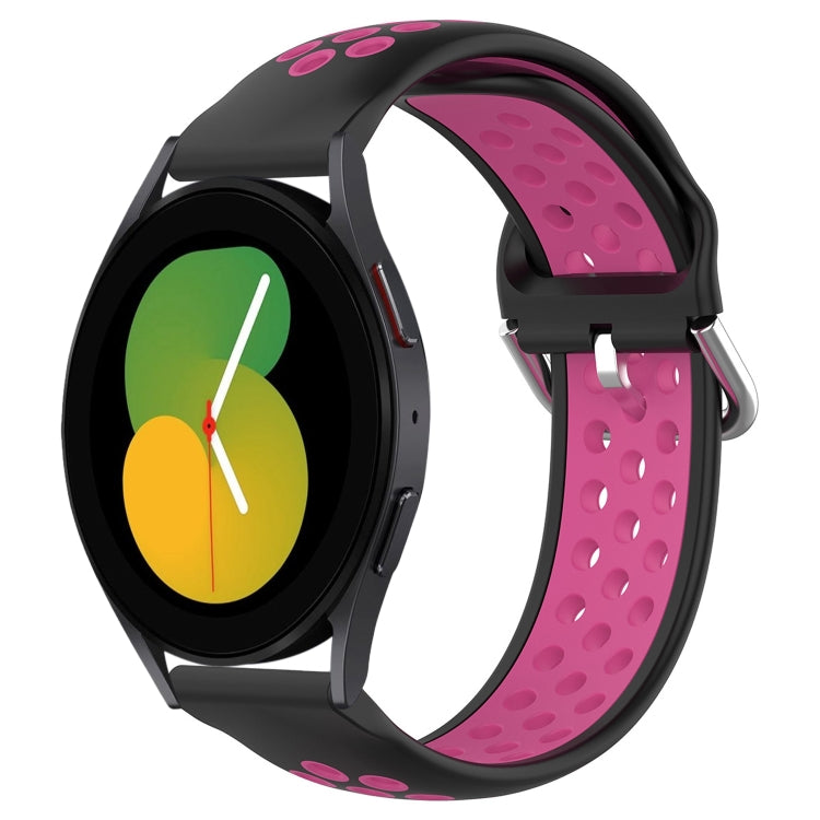 Banda de Reloj de Silicona Deportiva para Samsung Galaxy Watch 5 44mm 20mm (Negro + Rojo Rosa)