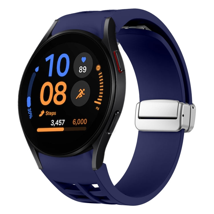 Correa de Silicona para Samsung Galaxy Watch FE 40mm Richard con Hebilla Plateada Plegable Magnética (Azul Medianoche)