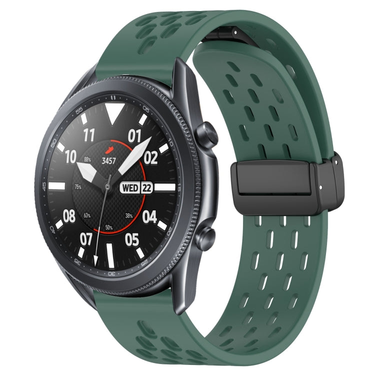 Correa de Reloj de Silicona Samsung Galaxy Watch3 45mm 22mm con Cierre Magnético Plegable (Verde Oscuro)