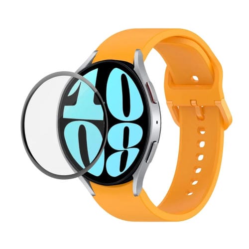 Correa Ajustable de Silicona Junsunmay para Samsung Galaxy Watch6 44mm + Kit Protector Pantalla Pmma (Naranja)