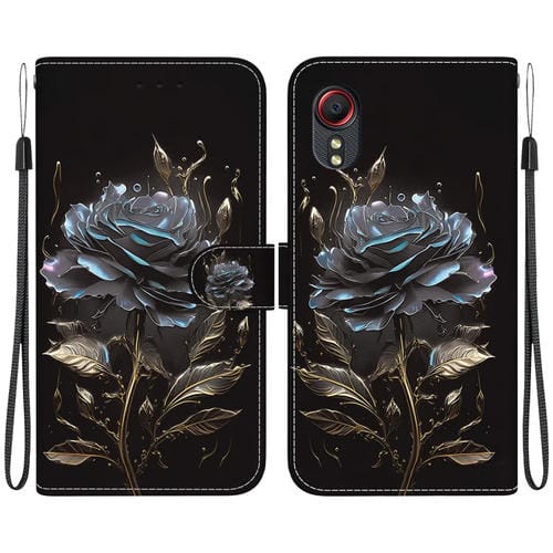 Funda de Teléfono Samsung Galaxy Xcover 5 Cuero Dibujo Coloreado Textura de Cristal (Rosa Negra)