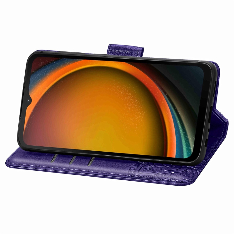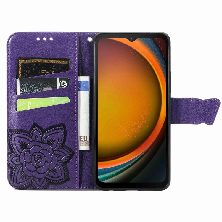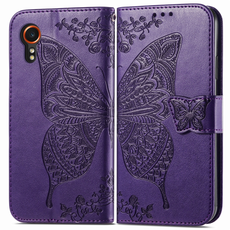 Funda para Teléfono Samsung Galaxy Xcover 7 Cuero Relieve Flor de Amor y Mariposa (Púrpura Oscuro)