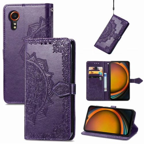 Funda para Teléfono Samsung Galaxy Xcover 7 Cuero con Relieve de Flores Mandala (Púrpura)