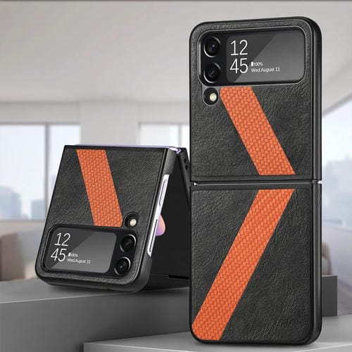 Estuche para Teléfono Plegable Samsung Galaxy Z Flip4 con Costuras de Fibra en Forma de L (Negro)