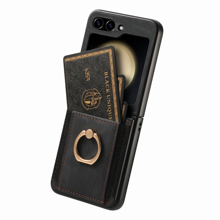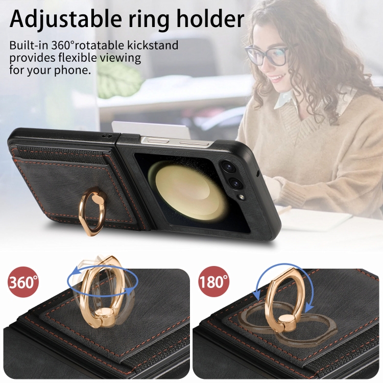 Funda para Teléfono Samsung Galaxy Z Flip 5 con Bolsa para Tarjeta y Anillo (Negro)