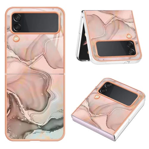 Estuche para Teléfono Samsung Galaxy Z Flip3 5G Imd Doble Cara Mármol Galvanizado (Oro Rosa)