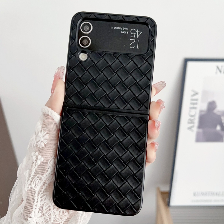 Funda Plegable Samsung Galaxy Z Flip4 Teléfono PU Textura Tejida (Negro)