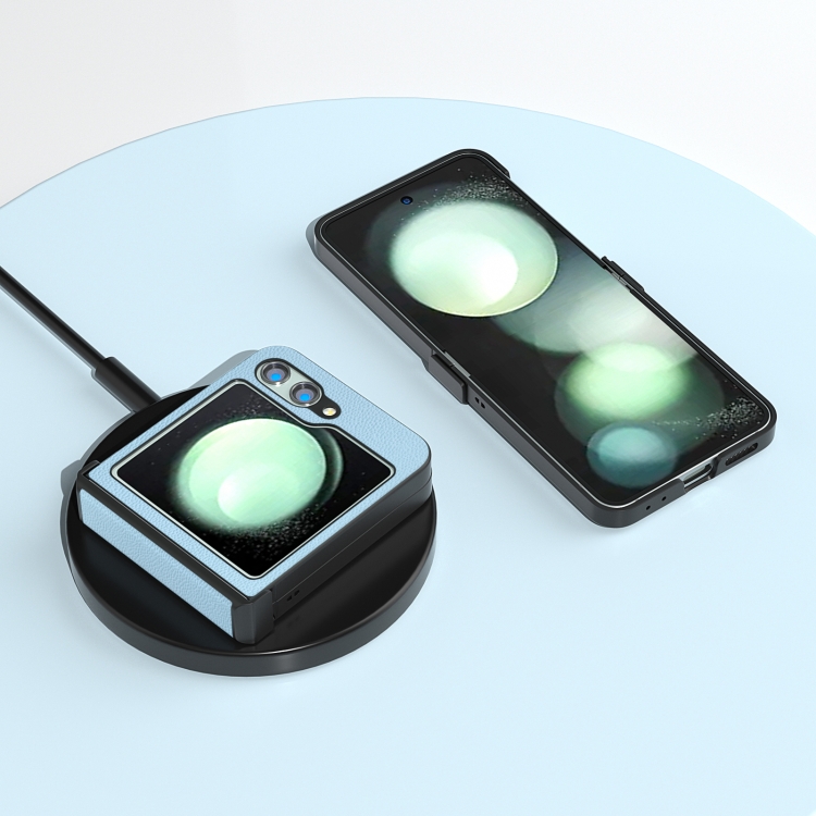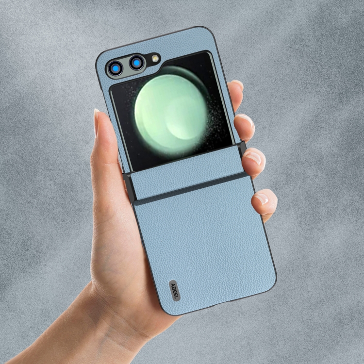 Funda para teléfono Samsung Galaxy Z Flip5 Abeel Cuero Genuino Tres Etapas (Azul Cielo)