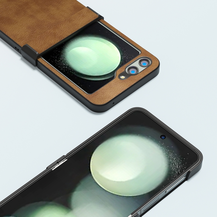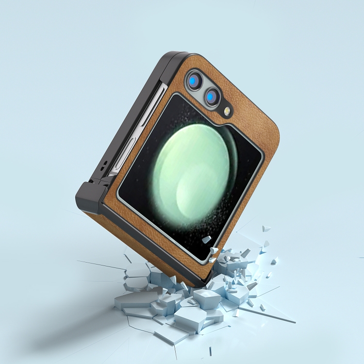 Funda para teléfono Samsung Galaxy Z Flip5 Abeel Hinge Retro Litchi Texture Pu (Marrón)