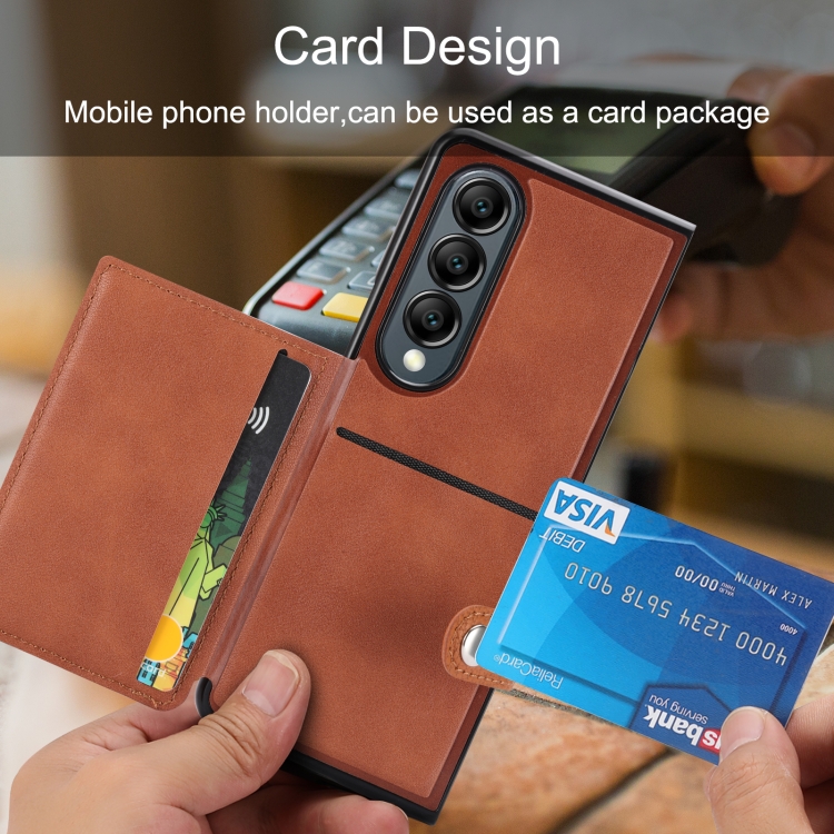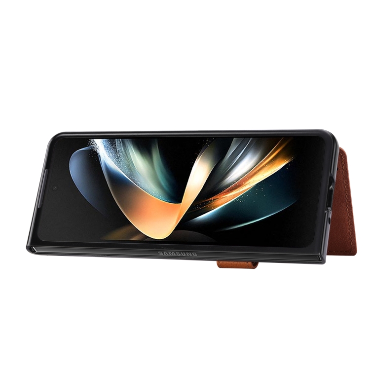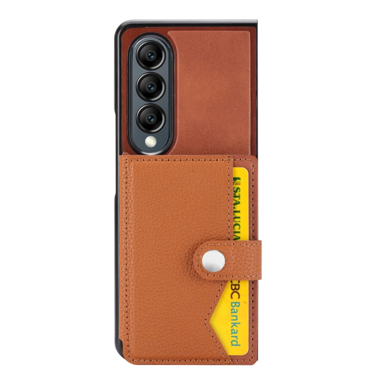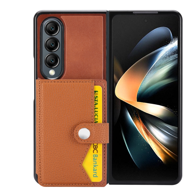 Funda para Teléfono Samsung Galaxy Z Fold3 5G con Tarjetero y Botón Patrón Litchi (Marrón)