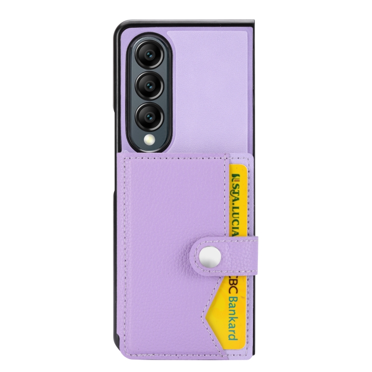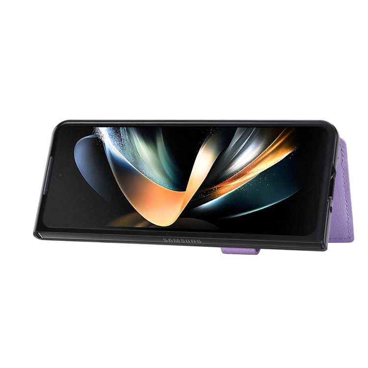 Funda para Samsung Galaxy Z Fold4 5G con Tarjetero de Un Solo Botón y Patrón Litchi (Púrpura Claro)