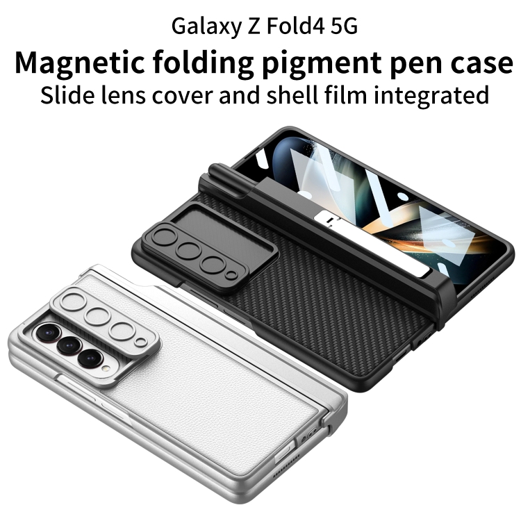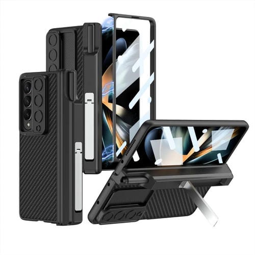 Funda para Samsung Galaxy Z Fold4 Gkk Cuero con Tapa y Bisagra Magnética con Soporte (Fibra de Carbono)